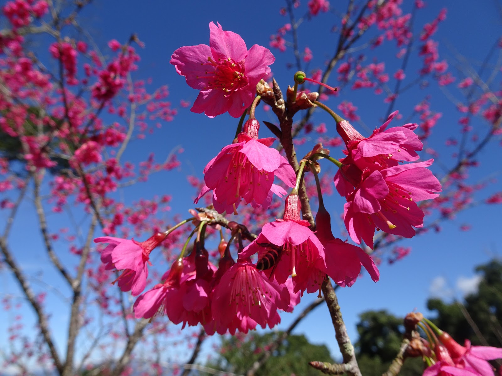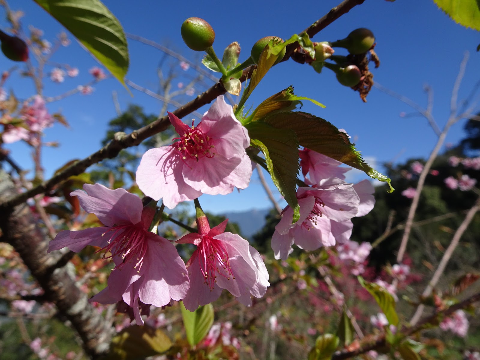 櫻花公園賞花活動日期為1月12日起至108年1月26日止,賞花地點位在藤枝林道16.5公里處,櫻花通常在梅花開放後才會進入花季,今年高雄山區梅花尚未全面盛開,桃源二集團櫻花公園已有櫻花盛開。