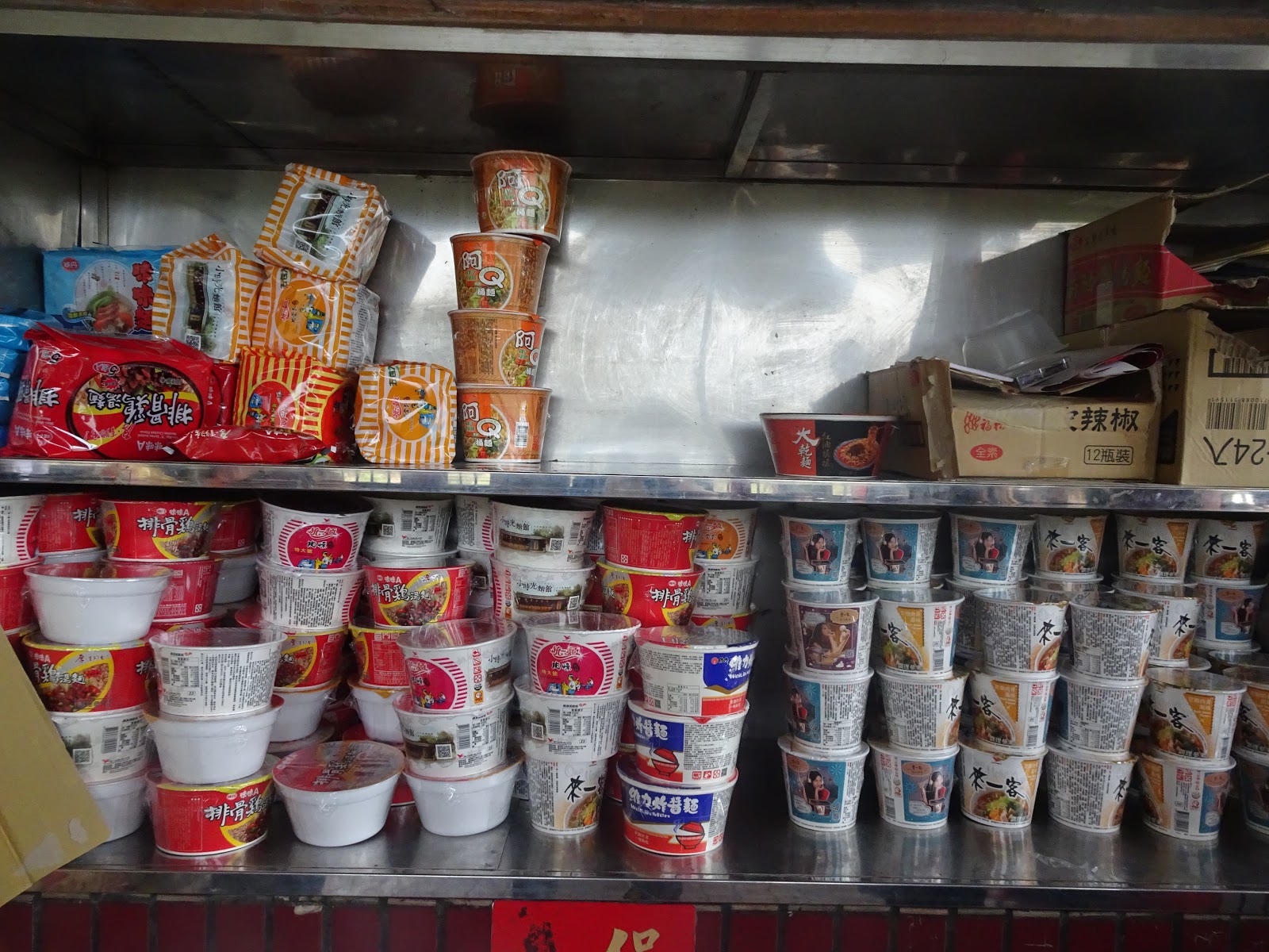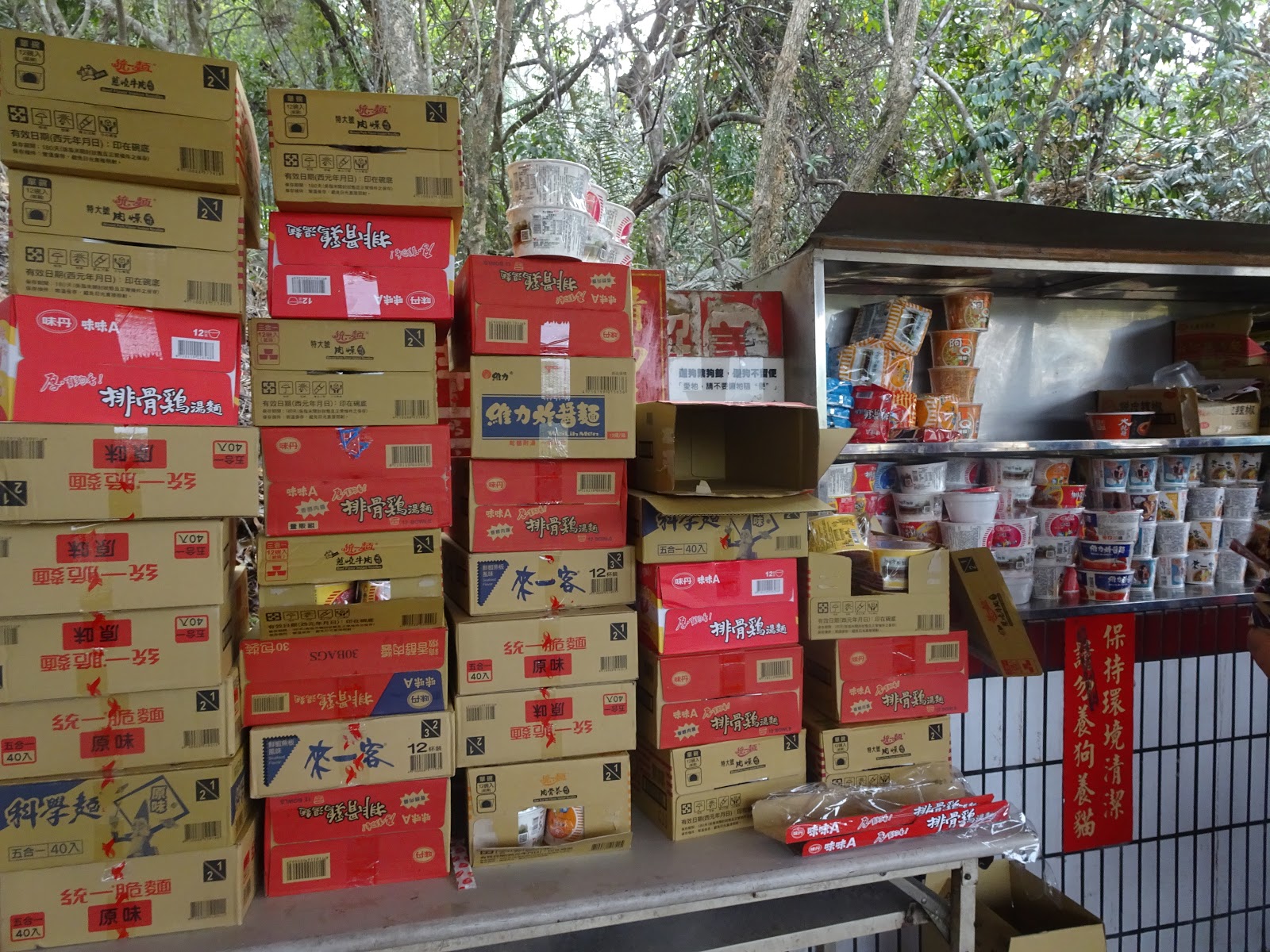 供桌上很多的泡麵