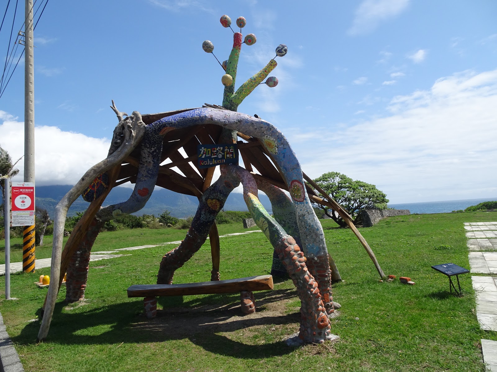 區內也有不少由漂流木所組成的裝置藝術作品,其中有兩條魚矗立在海邊,取名為「我的好朋友」的裝置藝術作品,上面寫道:「歡迎過路的旅者,有一個輕鬆愉快的旅程!」其他還有「類窗櫺」、「日昇之舞」、「風車組」、「哭泣的露珠」等,連休憩涼亭中的裝飾也可見漂流木的蹤影,讓加路蘭成為最美的藝文海岸遊憩區。