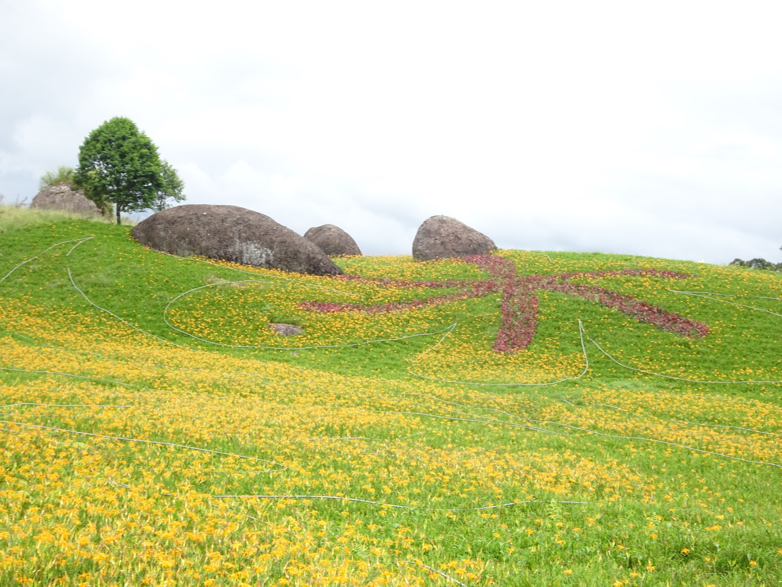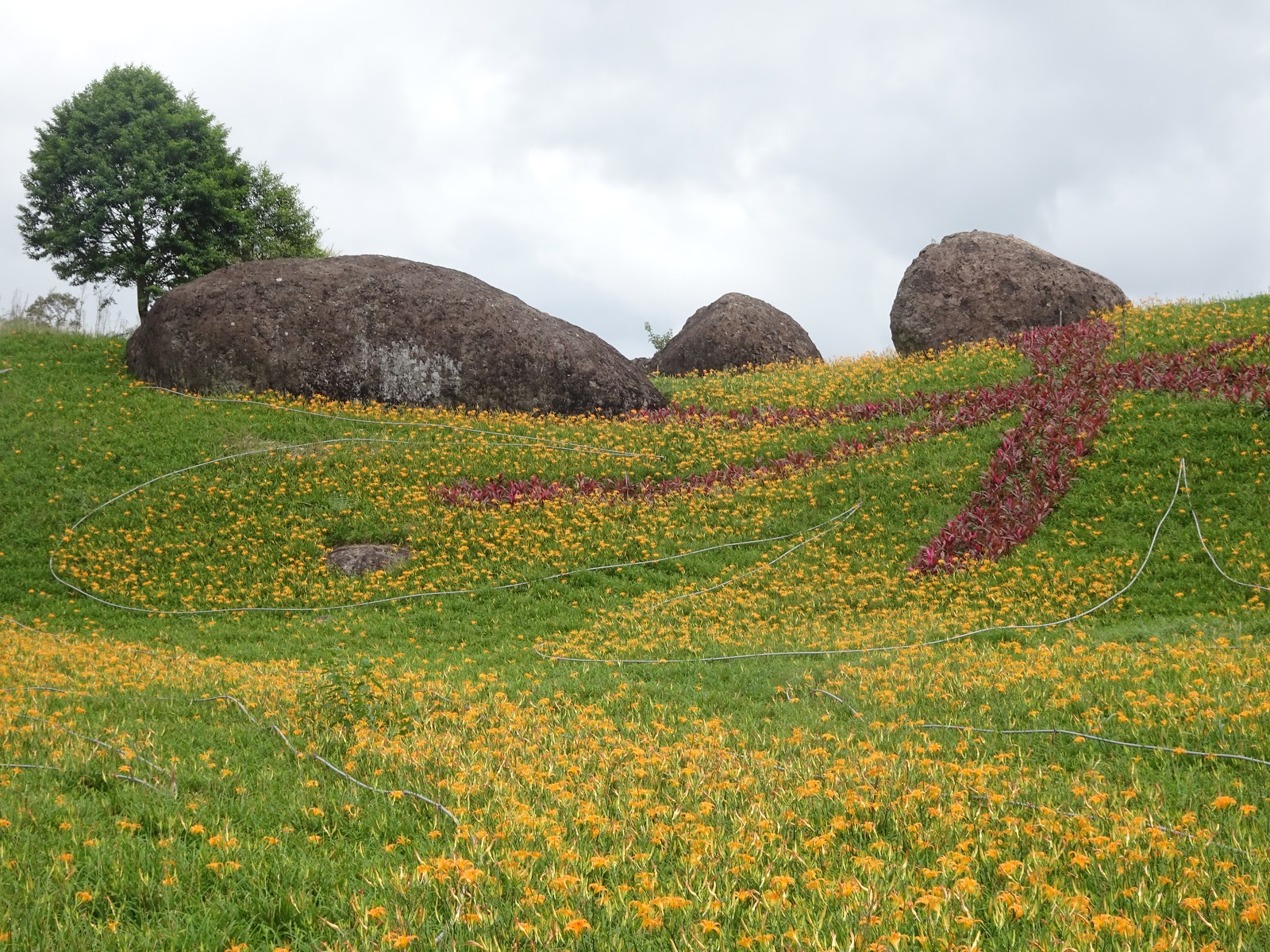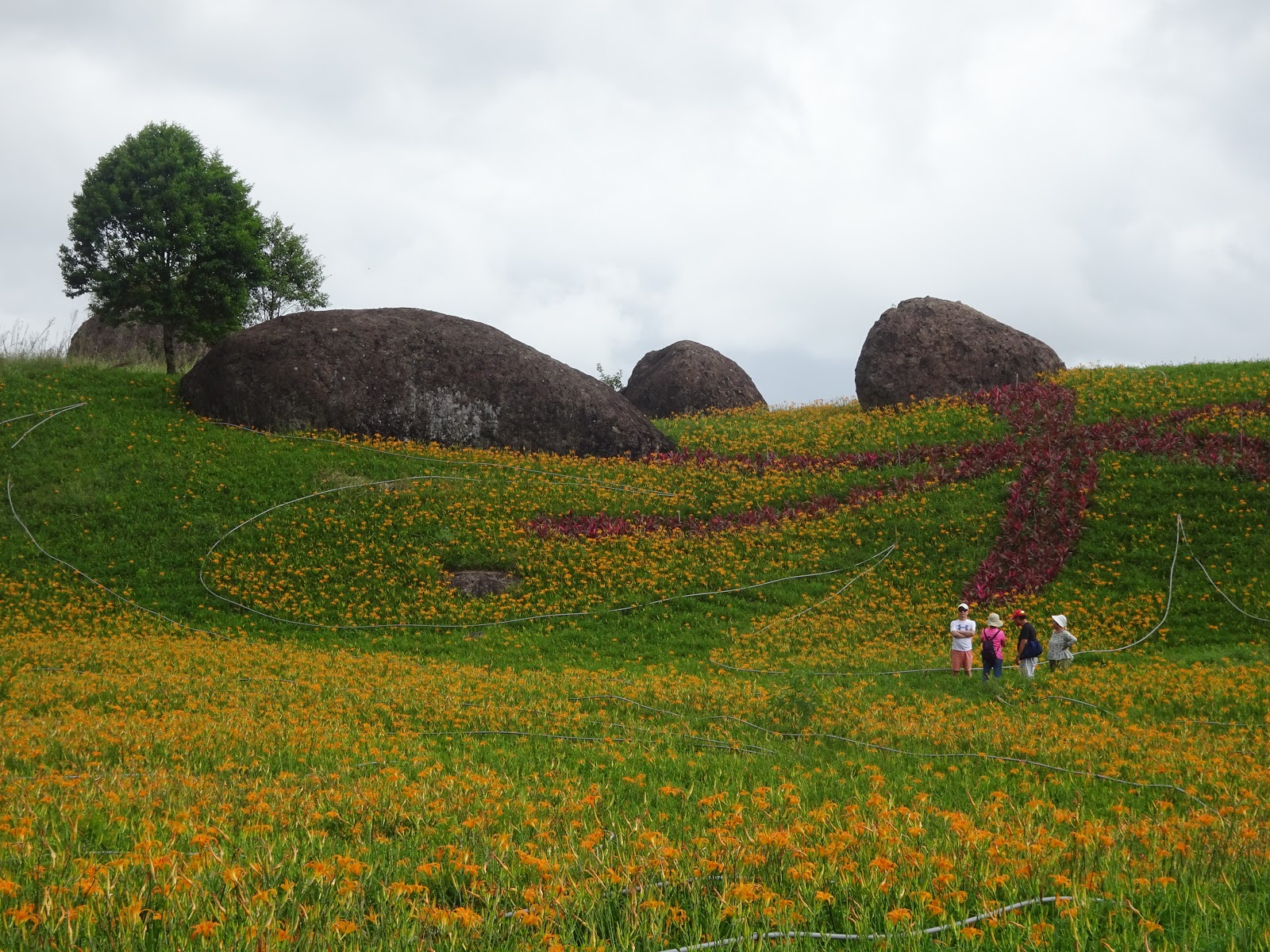 三顆奇石-據說三顆石頭是黑色火成岩組成,獨立在這片花海上,這裡的步道比較開闊,與萬年神龜是相反方向的點