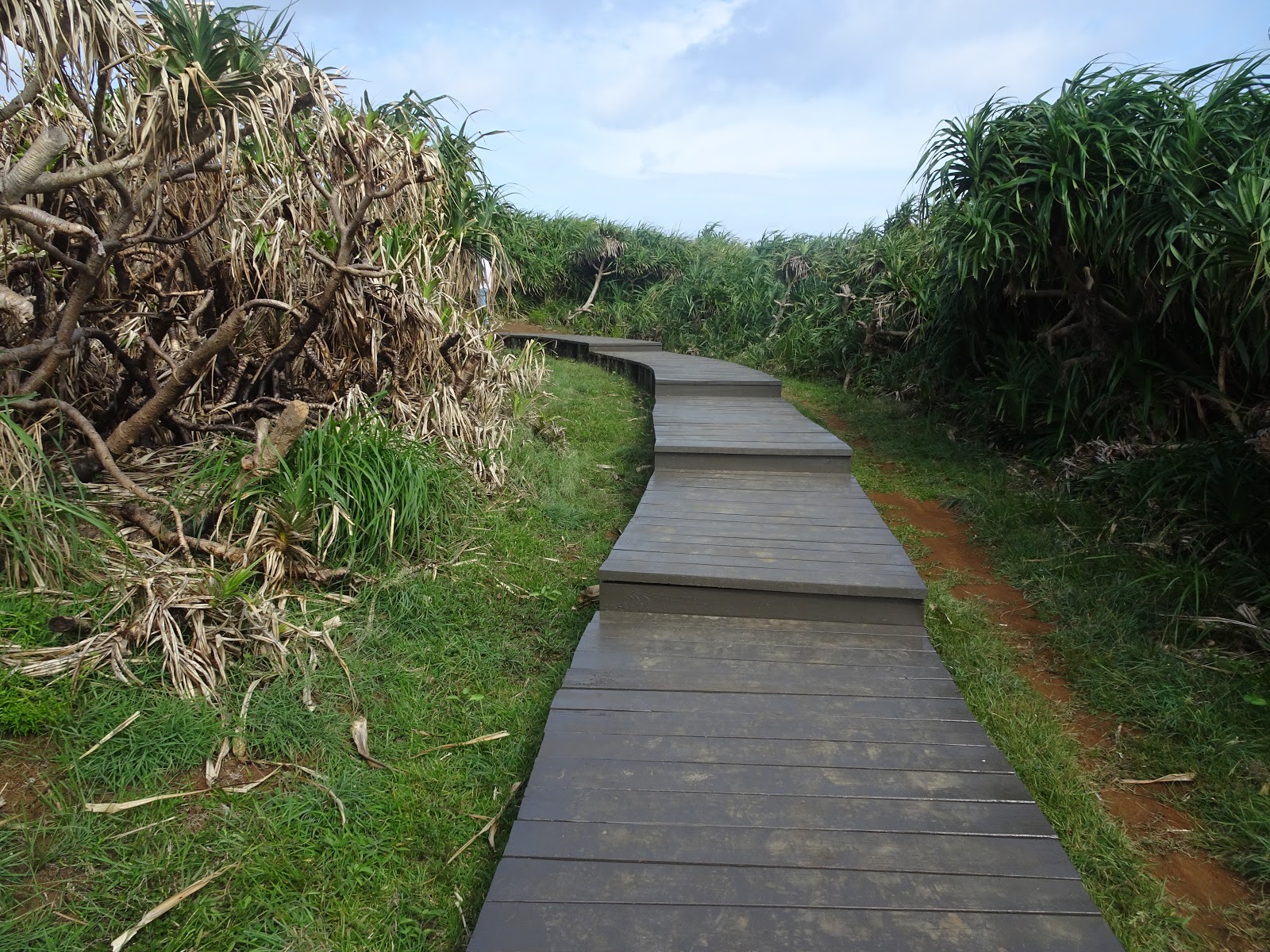 往牛頭山的路上,有一段木棧道,兩旁都是林投樹