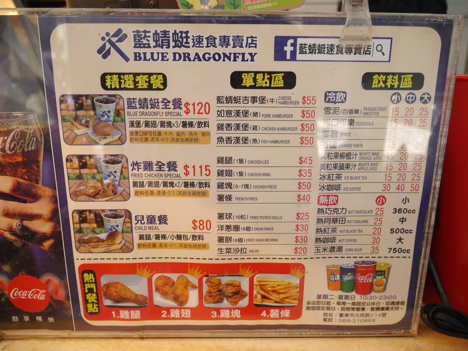 這間外觀樸實,充滿排隊人群,千萬不要懷疑,正是台東人記憶中的最佳速食店。沒有華麗裝潢,新潮的菜單選項,卻有始終如一的好味道;最原始的炸雞,不做過多調味,像是放學後媽媽用心做好的點心,這是網路上對藍蜻蜓的評價。