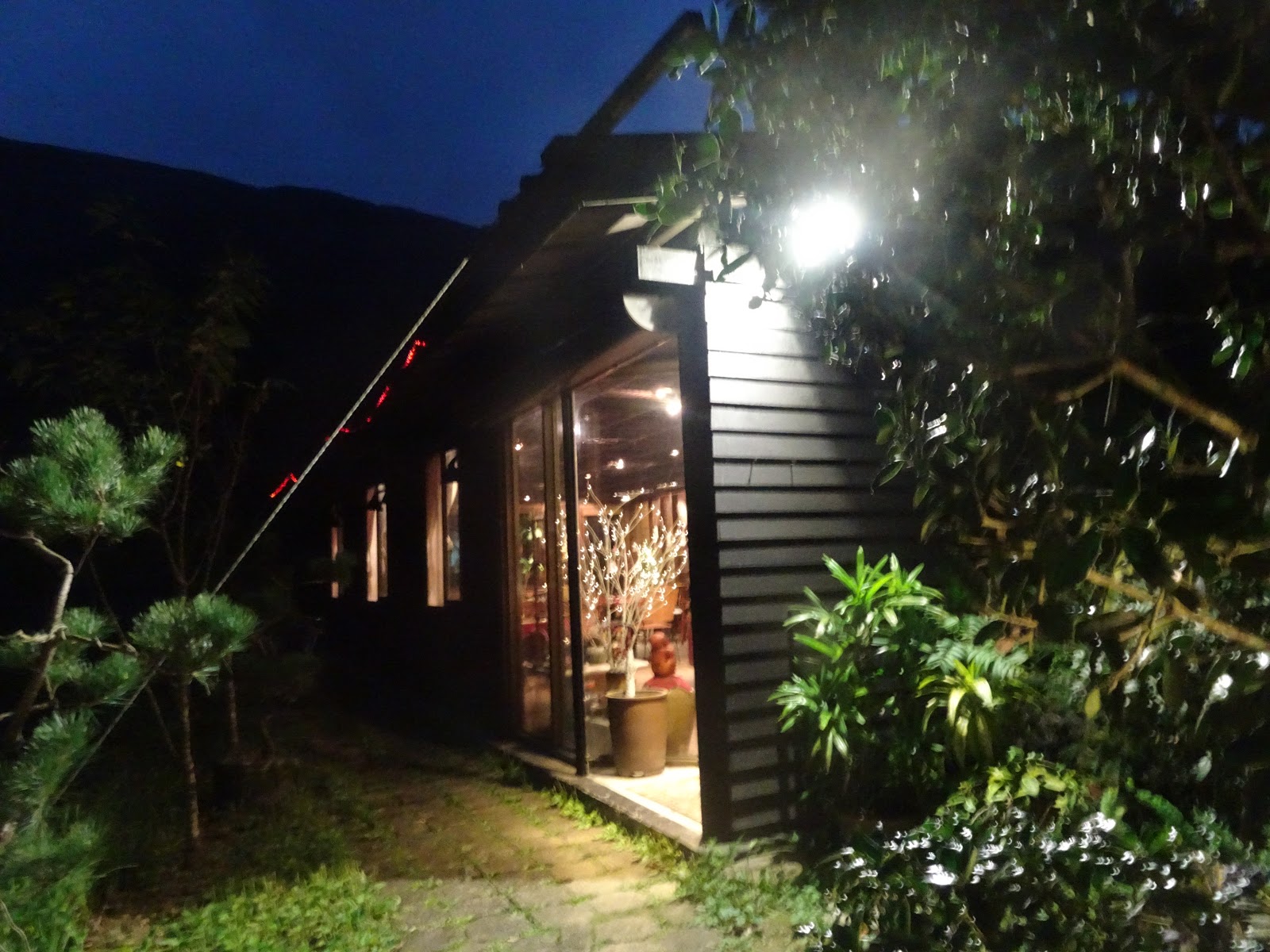 果然是黑木屋 整個建築都以暗色或黑色呈現