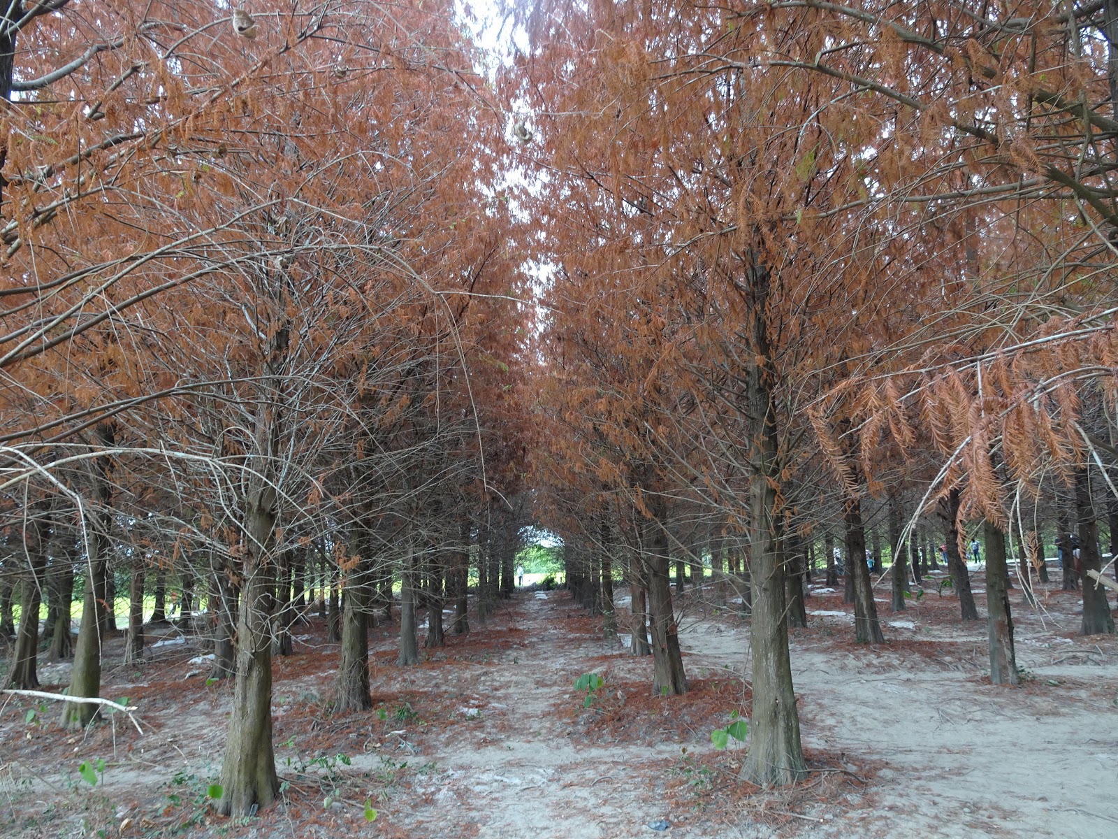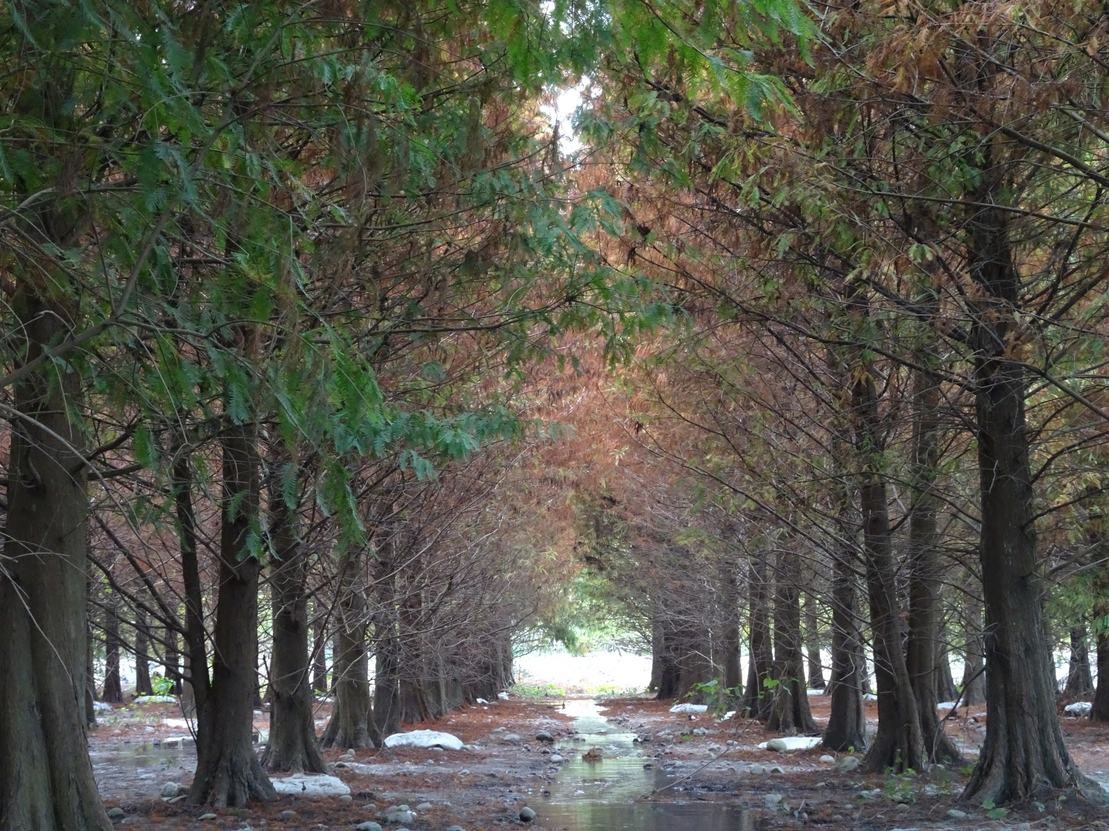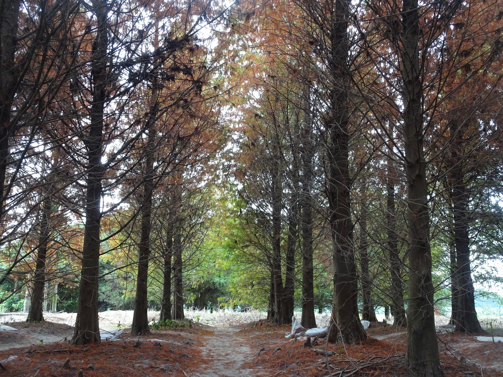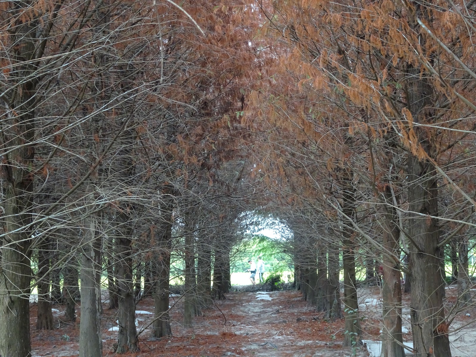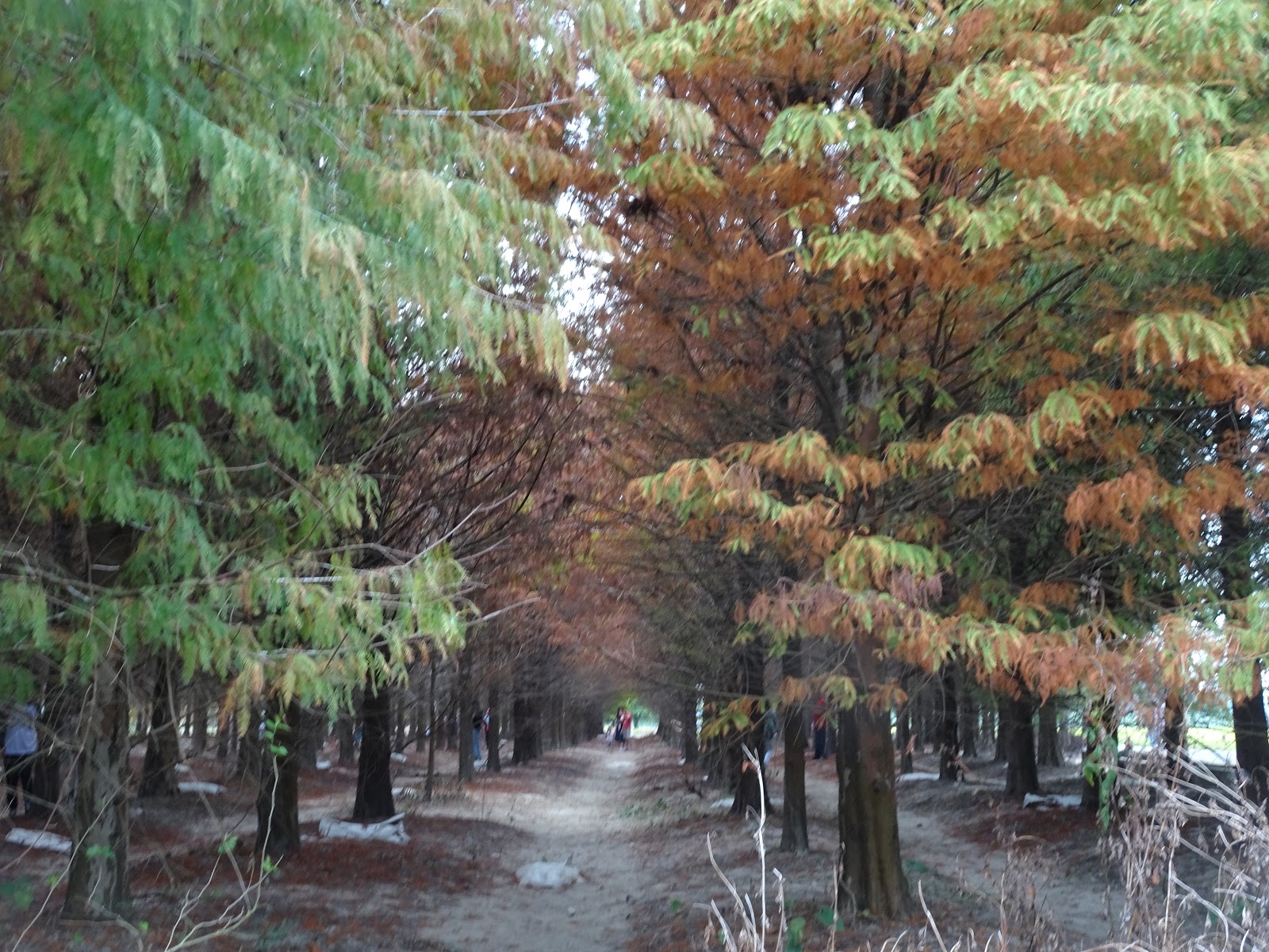 外邊看起來很綠,一轉彎風景變不同,這好多區落羽松林