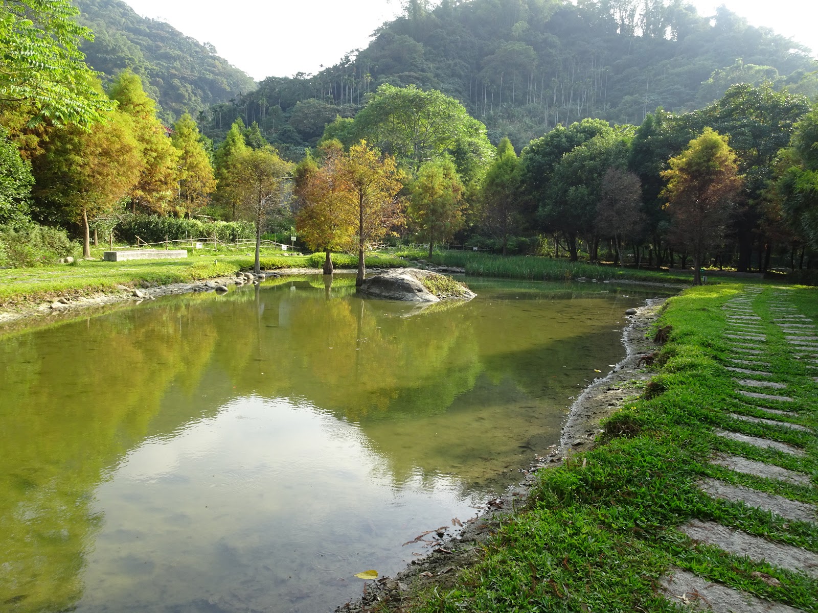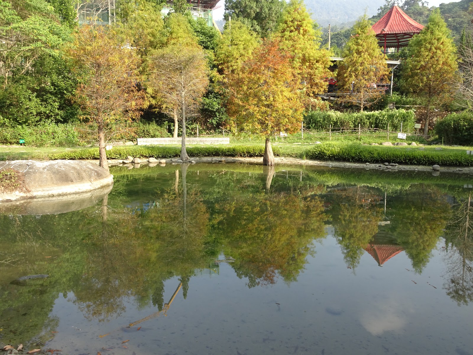 台中市太平區 - 太平苗圃落羽松20191126賞秘境 太平落羽松森林秘境,搭配生態池水面倒影,湖光山色相當漂亮,位置隱密,就在東汴國小附近的太平苗圃內,落羽松森林地方不大,生態池的周圍有石板步道,很好走 地址:台中市太平區山田路大湖巷17號 大門 小而美的秘境落雨松,很遠,很寧靜 很有靈氣的地方吸睛 落雨松已經開始轉紅了,今天天氣很好,剛好可以拍到倒影 不同的蜻蜓種類 溪邊的鳥 苗圃旁邊的步道 可以走走欣賞茶花和松樹