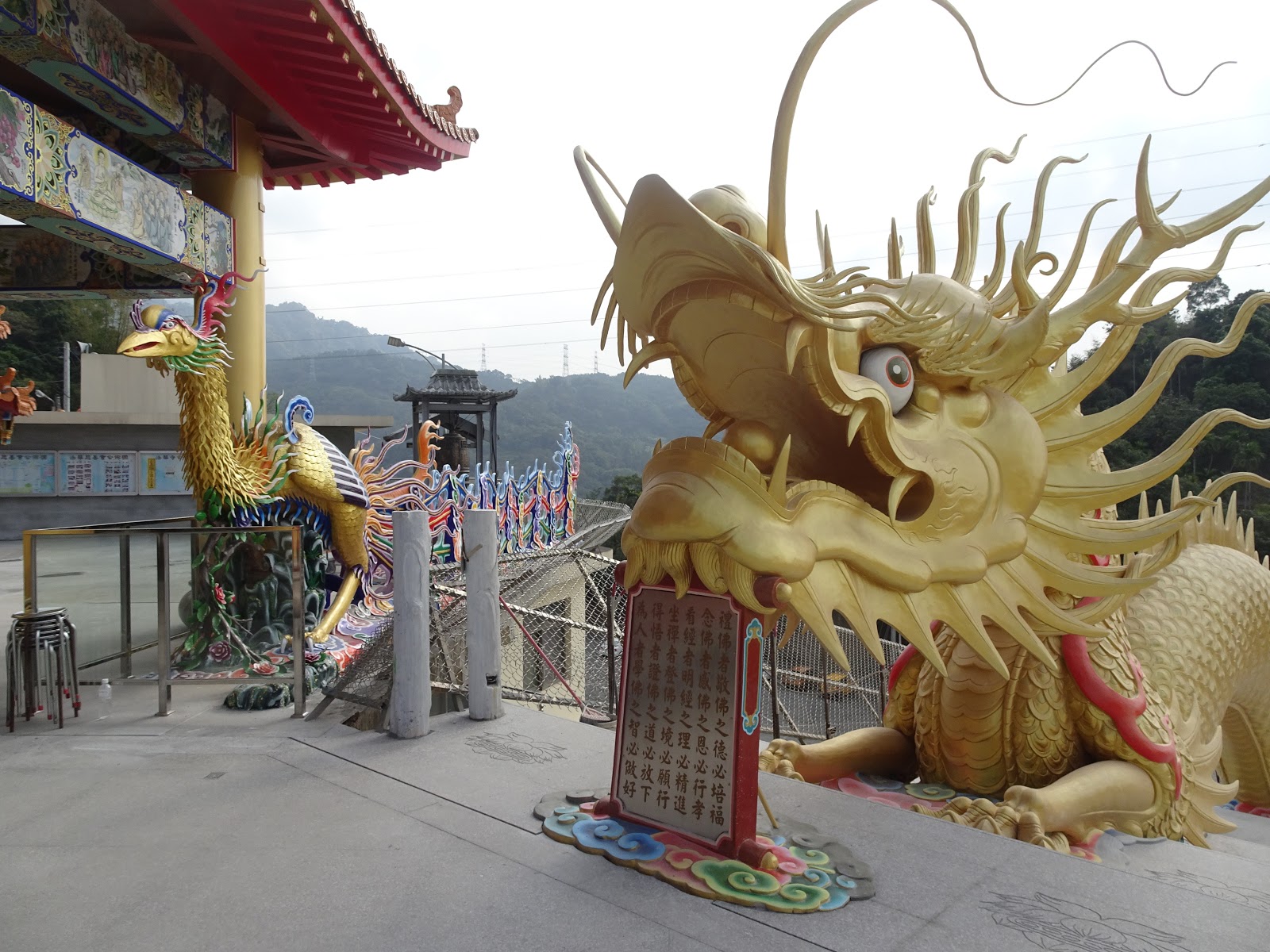 位於南投縣中寮鄉的金龍山法華寺,2016年耗資共1600萬,打造氣派的「金龍樓梯」,這條樓梯最大特色在於兩側的金龍,全長80公尺,拉直更達到110公尺長,為寺廟帶來一股莊嚴氣息,這條金龍樓梯也成亞洲最大、最長的龍雕像,金龍的主體結構是以鋼筋水泥為主,而龍鬚細長的樣子則是使用鋼條建造,龍頭是往天空的位置向上,從低處走往高處時,可以看到龍爪抓住樓梯的樣子,因為細緻的雕刻,龍的肌肉彷彿真的在用力,栩栩如生的樣子,十分吸睛。
