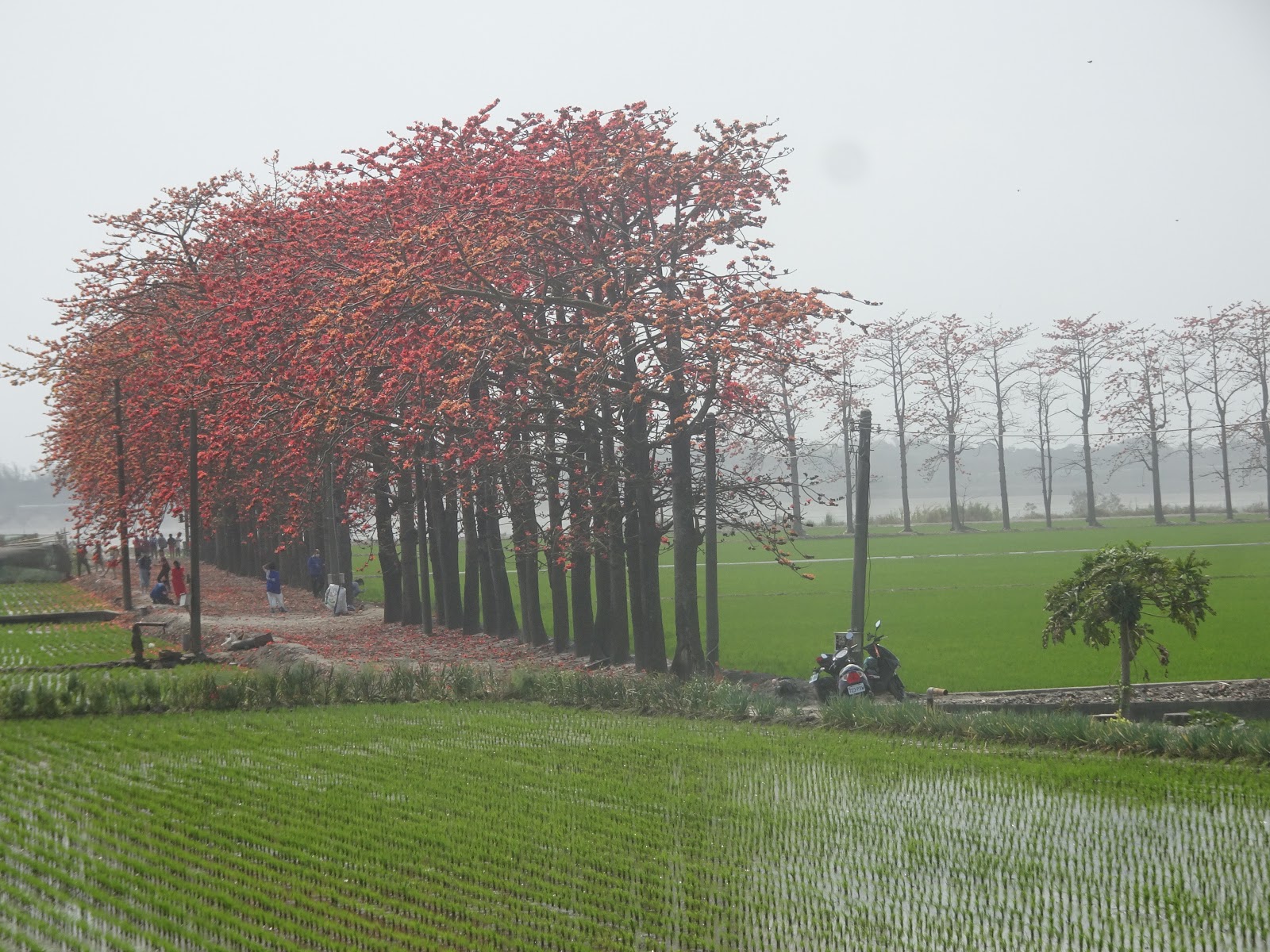 彰化縣竹塘鄉 - 竹塘木棉道20200309賞花景點 成排木棉花矗立於遼闊無垠的田園間,走過花香樹影的竹塘鄉木棉花道,碧綠的稻田將木棉花的火紅襯托得更加迷人,口耳相傳的打卡新秘境現正盛放中!平日來遊客絡繹不絕,可見竹塘木棉花道的吸睛程度。 地址:彰化縣竹塘鄉九塊厝堤防69號 成排火紅的木棉,配上綠油油的稻田,那如詩畫般的美景,融化了豔陽下每個旅人的心。 火紅的花道像陽光一樣的熱情 美麗的身影總是令人著迷 落紅不是無情物.化作春泥更護花 花鳥圖