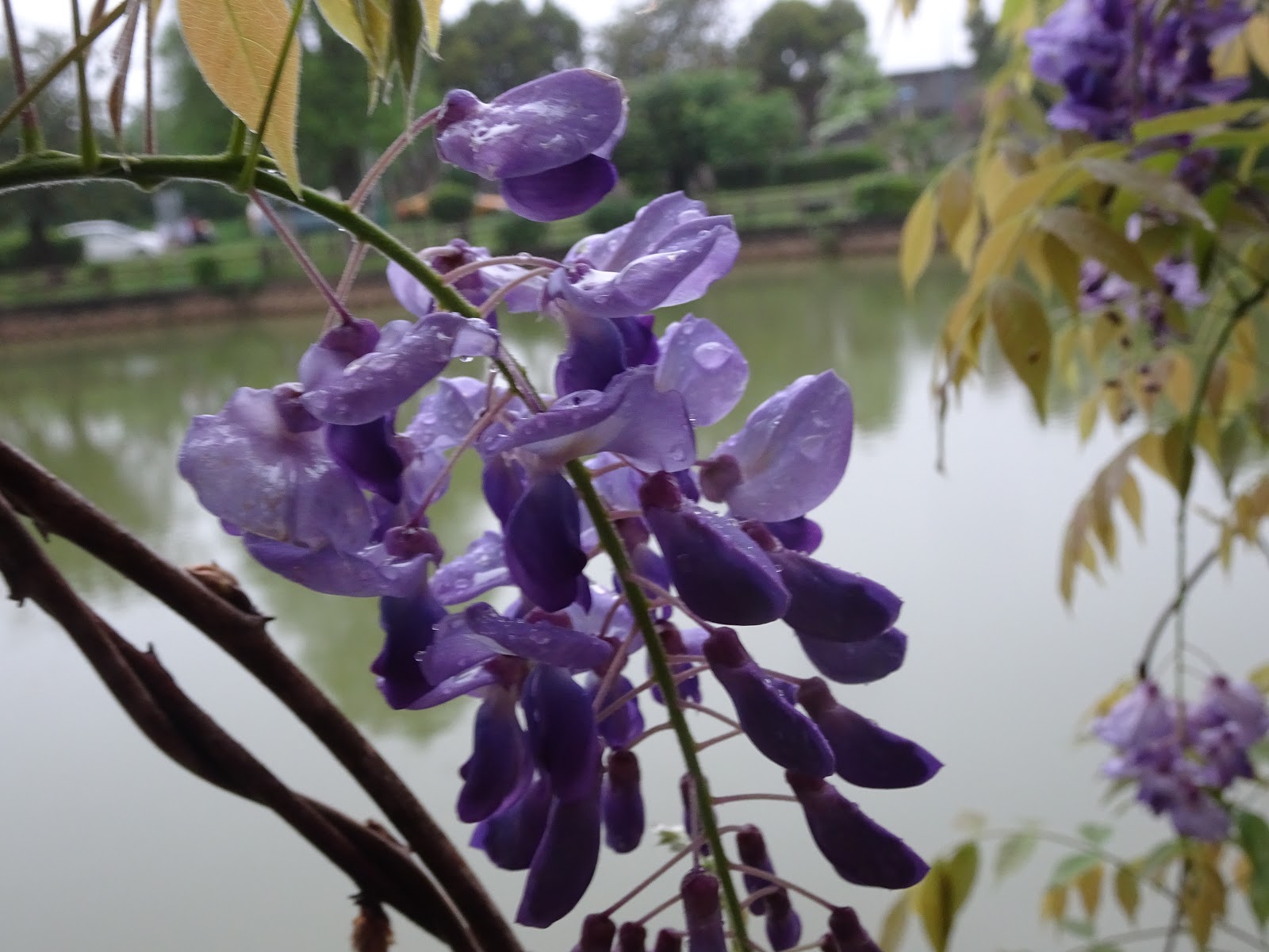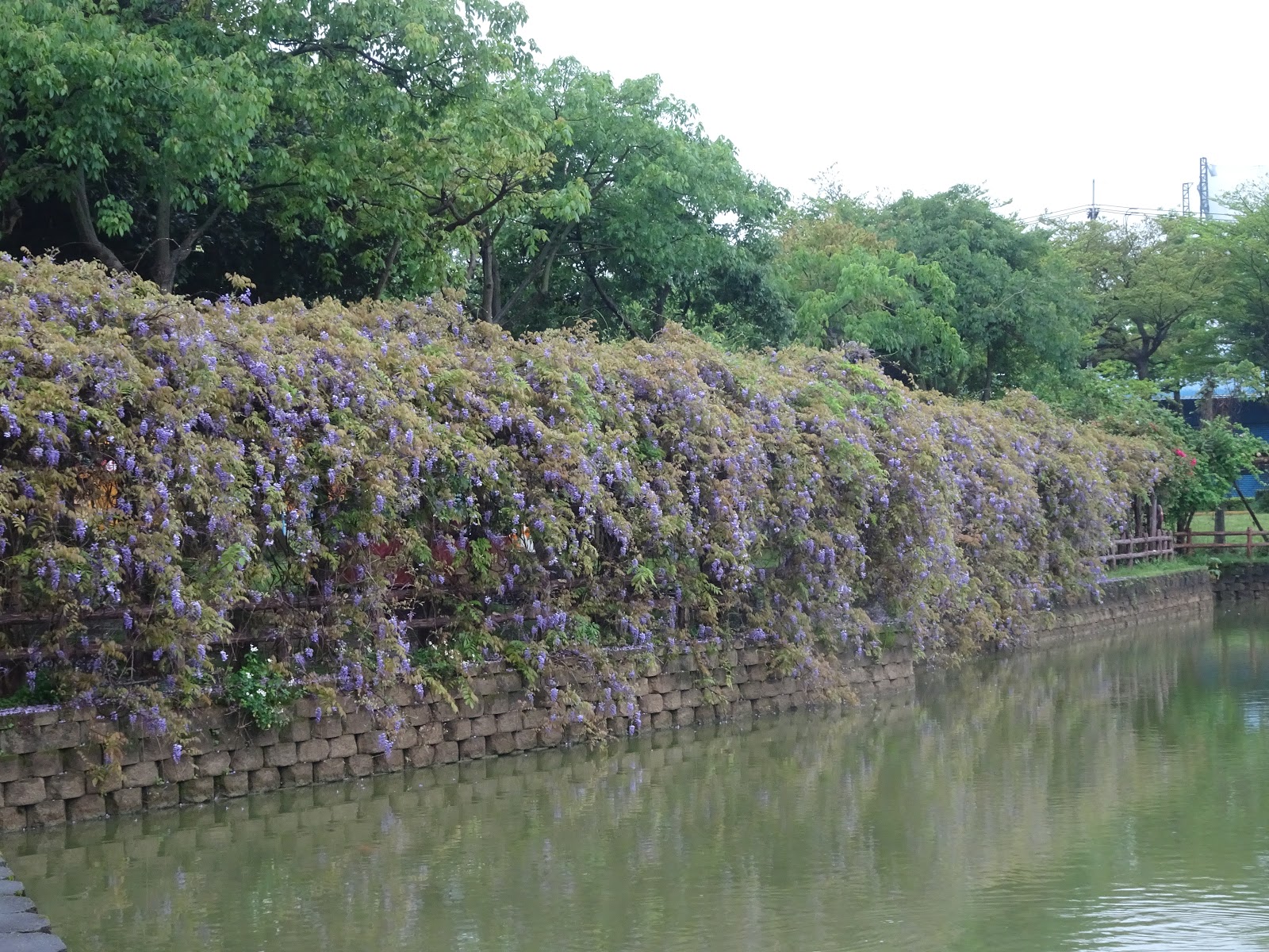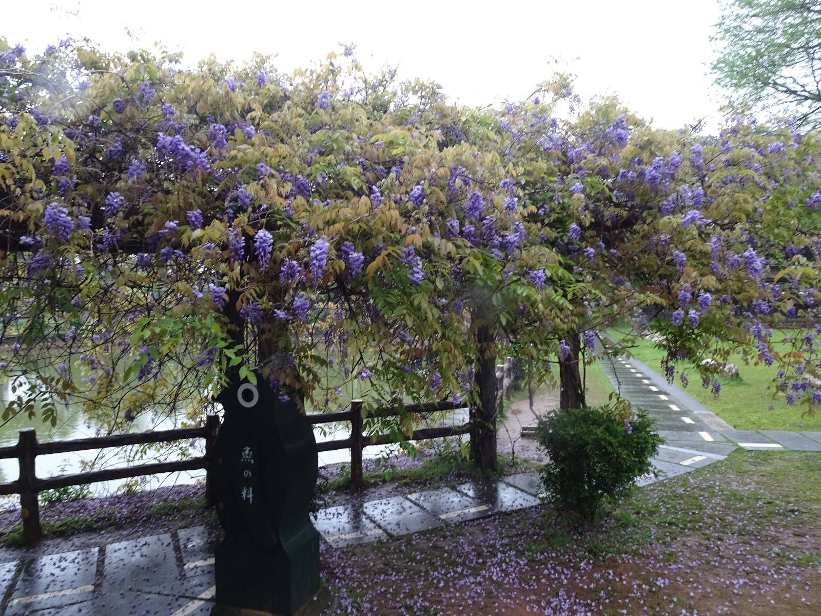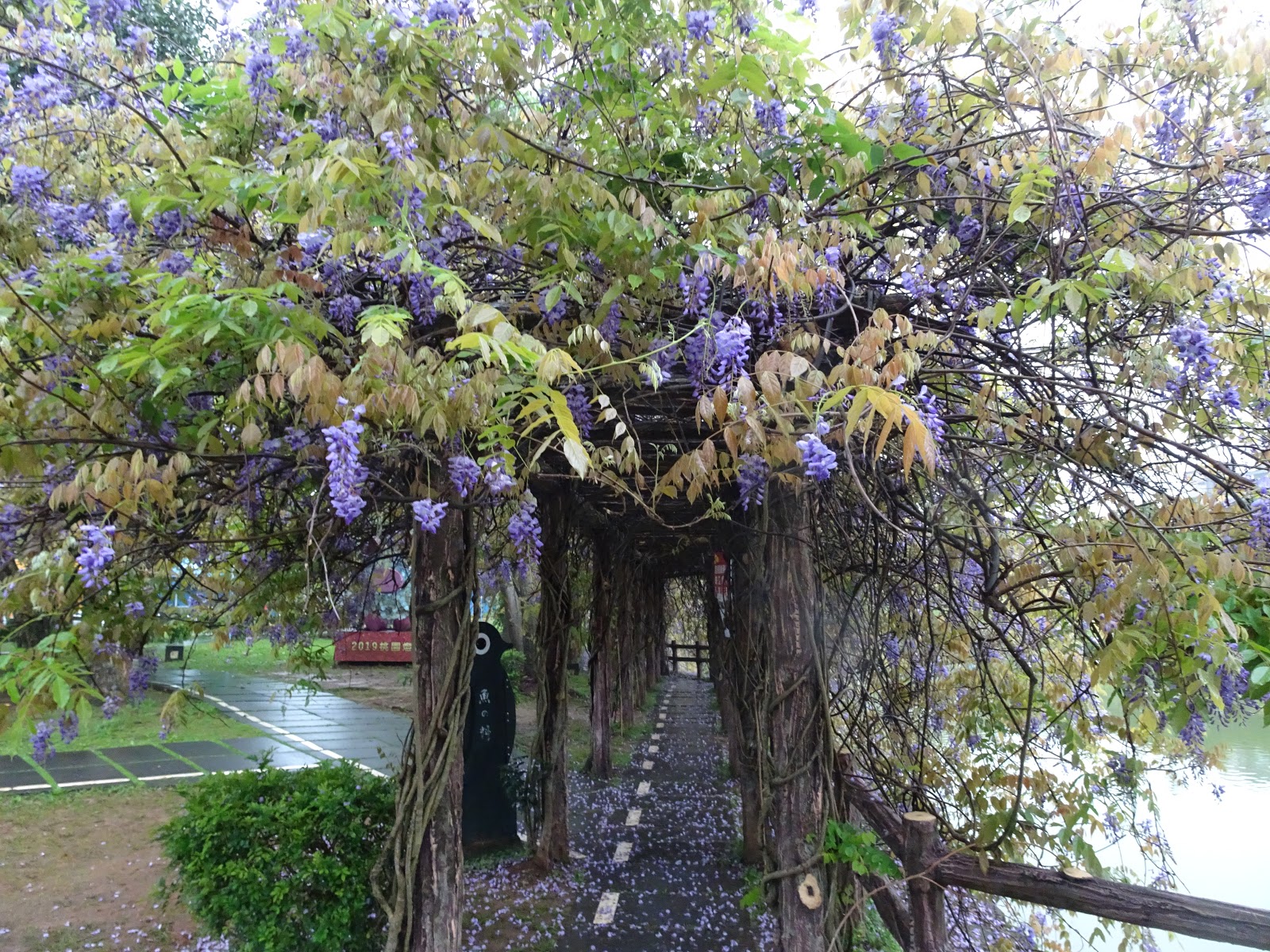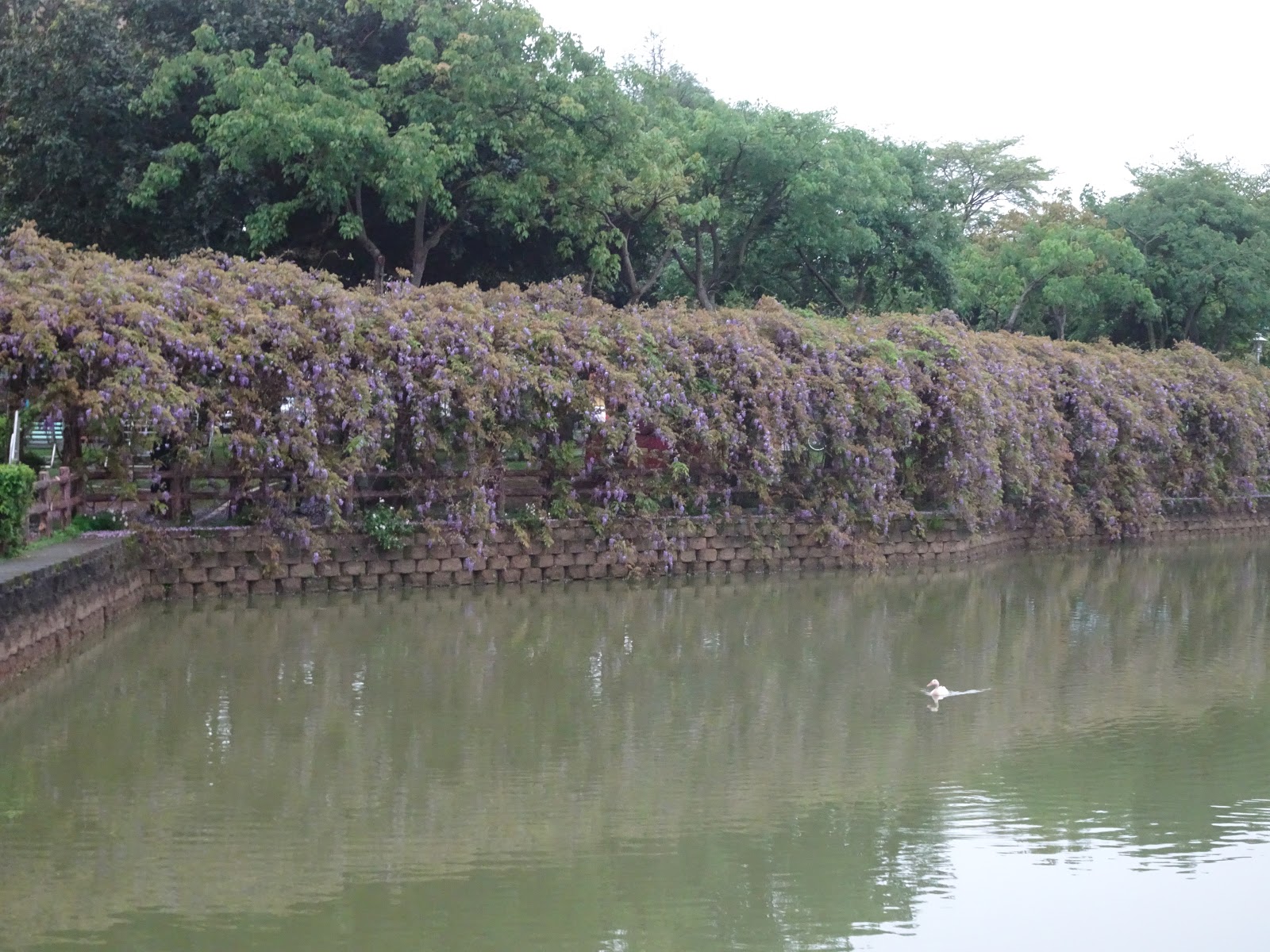 桃園市龜山區 - 大湖紀念公園20200331紫藤花開了 龜山大湖公園紫藤花瀑布盛開,還有流蘇花接力綻放,公園設有涼亭,草地、還有兒童遊戲區,佔地不算大,但也適合全家大小午候來散散步、健健身、賞賞花 地址:桃園市龜山區忠義路二段638巷 一大早七點多,陰雨天天色不佳,拍起來顏色怪怪的,但花香迷人 一大早的紫藤花 九重葛 開的超美的流蘇花 鳶尾花開得好雅 兩隻可愛的白頭翁正在談戀愛 湖裡的白鴨和翠鳥